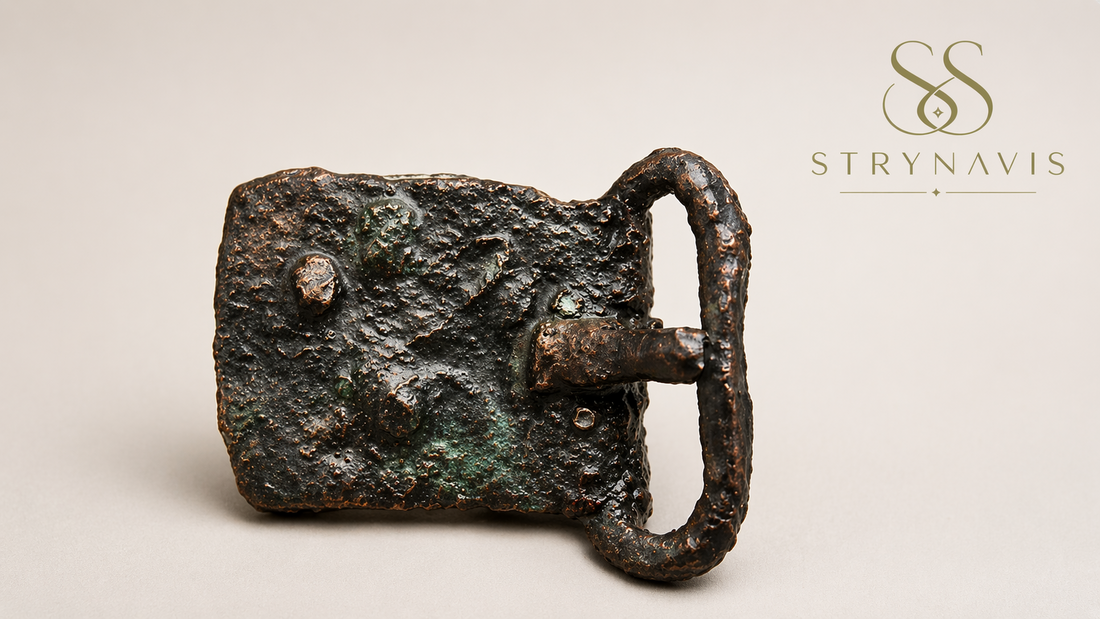 Mest sannsynlig:et rembeslag eller en liten beltespenne fra gårdsdrift, seletøy eller personlig utstyr